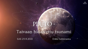 Erkki Lehtiranta pitää Suomen Astrologisen Seuran 2021 syyskuun kuukausiesitelmän aiheesta: Pluto, taivaan hidastettu tsunami. Taivaallinen muutosvoima Pluto siirtyy Vesimiehen merkkiin vuosiksi 2023-2044 ja pistää liikkeelle henkisen suursiivouksen, jossa monet kestämättömät rakenteet ja uskomusjärjestelmät päätyvät romukoppaan. Pluto poistettiin v. 2006 aurinkokuntamme planeettaperheestä, mutta astrologiassa sen voima ja merkitys ei ole mitenkään himmentynyt. Pluton kohtaaminen voi tarkoittaa totaalista kokemusta, valtavaa transformaatiota, joka voidaan kiteyttää sanoihin: tunteaksesi korkeutesi sinun on tunnettava myös syvyytesi. Kääpiöplaneetta voi viedä varjominän maailmaan, mutta nostaa esiin myös kätkössä…